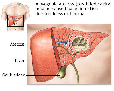 A liver abscess is a collection of pus in the liver. There are several region of liver abscess like bacteria, fungi, or parasites. The liver makes biles and enzymes that help digest food and gives your body energy. There are also remove the harmful material from your body. There are several increase the risk for liver abscess like alcohol, poor nutrition, medical condition such as cancer, etc.